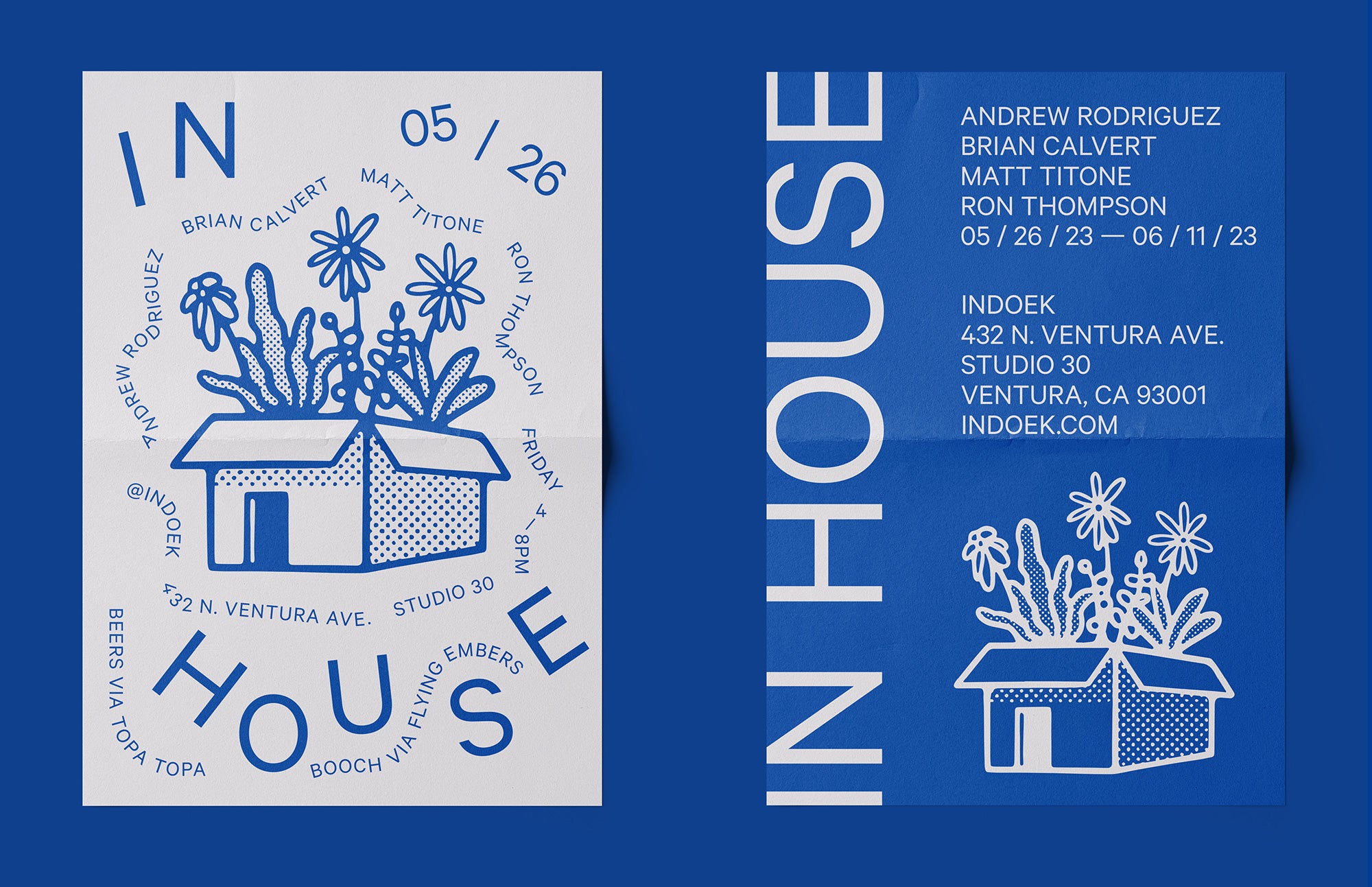 IN HOUSE is a group show at Indoek comprised of two creative studios: Matt Titone and Ron Thompson of ITAL/C, and Andrew Rodriguez and Brian Calvert of Sundown Studio. As designers and illustrators, this body of work represents an eclectic mix of graphic styles as the artists take a breather from client work. This exhibit will be on view from 05/26/23 — 06/11/23 at the Indoek Gallery in Ventura, California.