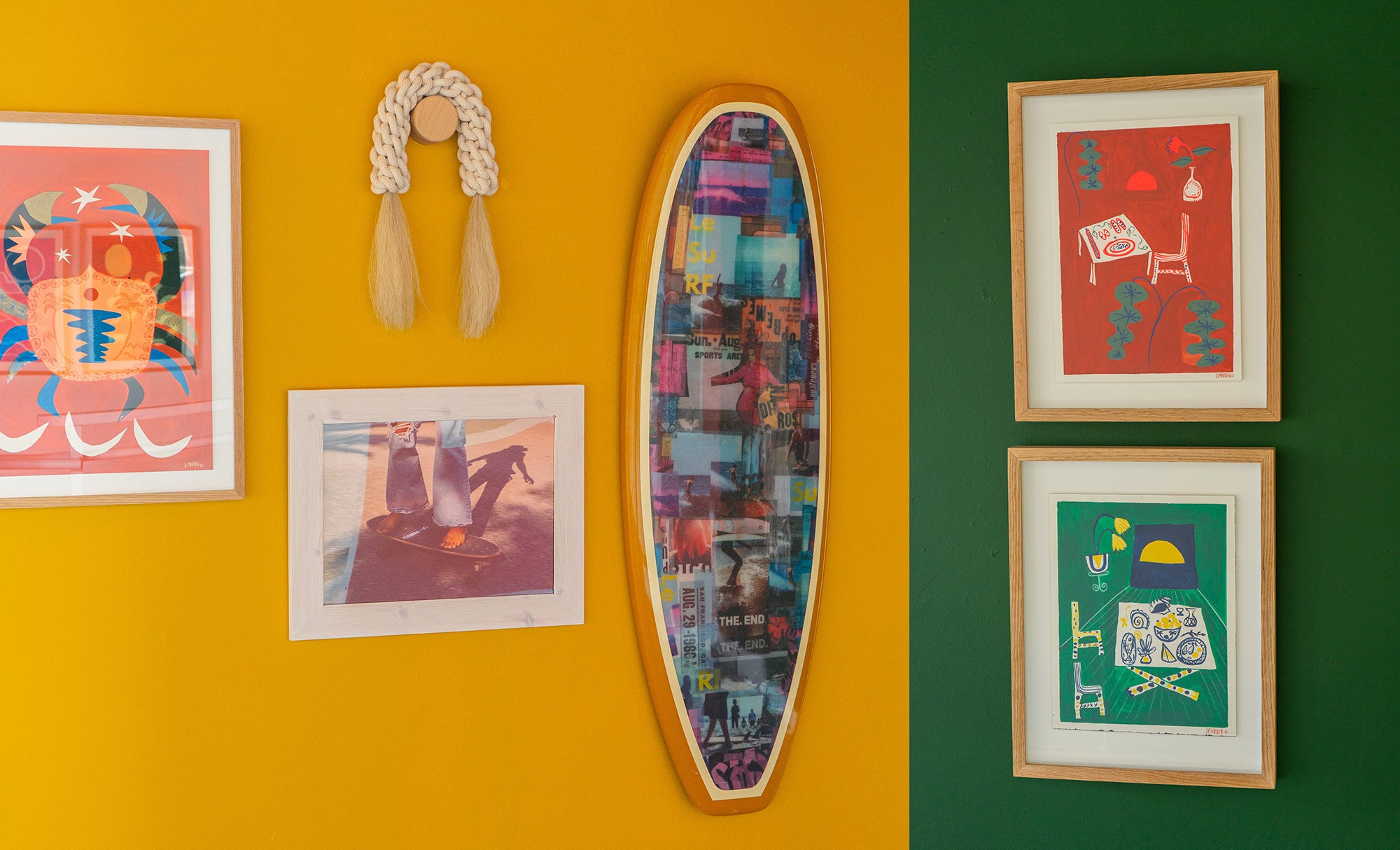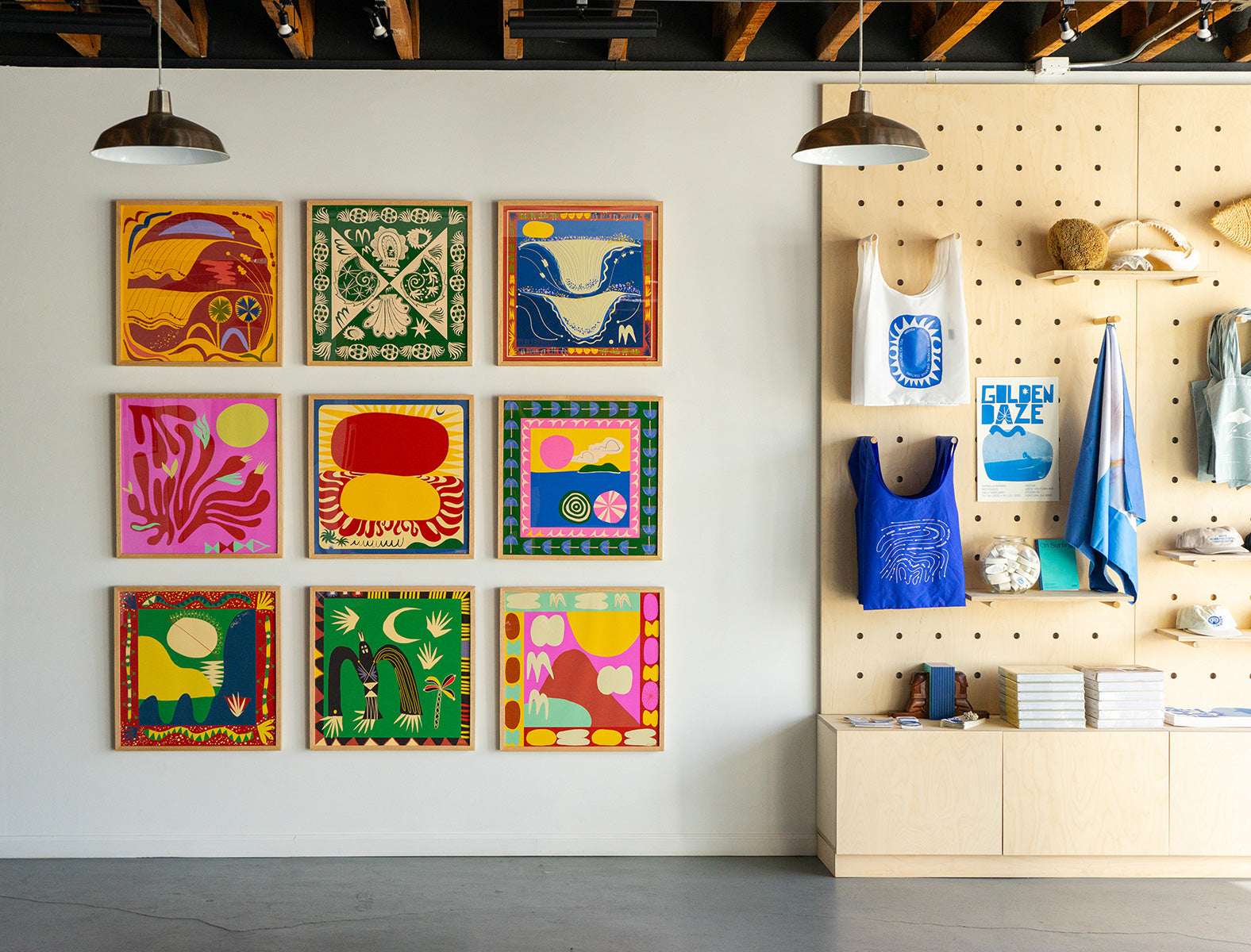 “Golden Daze” is a group art show featuring the paintings & illustrations of Daniella Manini, the photography of Nico Guilis, and the fiber art of Sally England. This exhibit represents our favorite time of the year; when the weather is perfect, the coastal crowds fade, the waves turn on, and harvest season begins. Despite working in different mediums, these three female artists share a common stylistic theme throughout this body of work: it is colorful and playful, yet elevated and sophisticated. Inspired by the past, but modern in context. Casual and spontaneous, but flawlessly executed. Golden Daze will be on view from 09/16/23 — 10/22/23 at the Indoek gallery in Ventura, California.