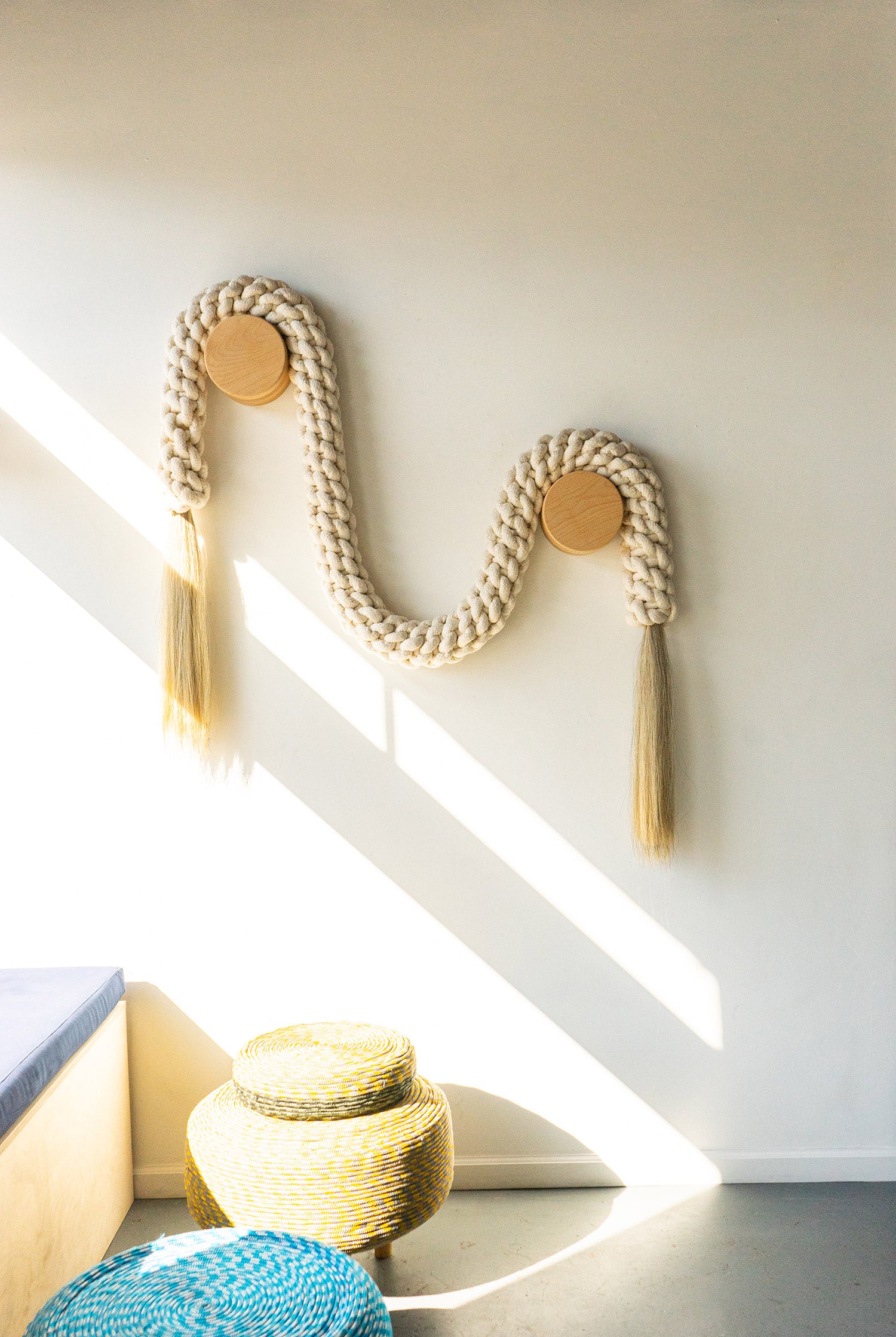 Sally England is a fiber artist living and working in Ojai, California. Raised in the Midwest, she received her B.A. in Communication Arts from Grand Valley State University in West Michigan, and later attended PNCA’s Applied Craft & Design MFA program in Portland, Oregon. Her fiber art and sculptural work aims to reflect the past into the future. She uses traditional handwork techniques to create modern forms inspired by symbology, architecture, and the human connection to nature. Using only her two hands as tools, she works primarily from muscle memory in an almost meditative state.