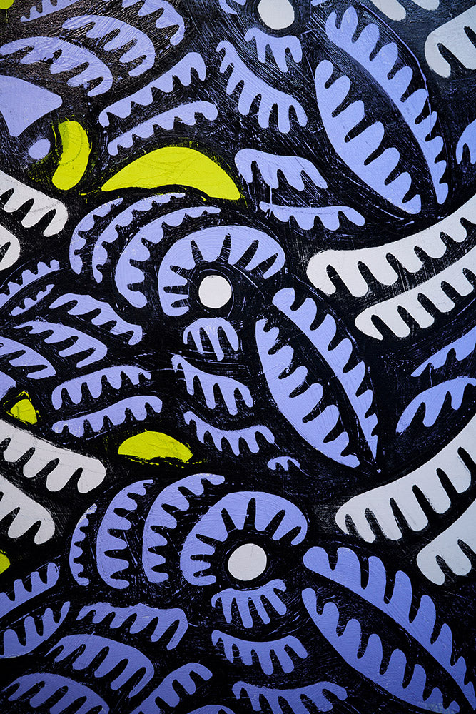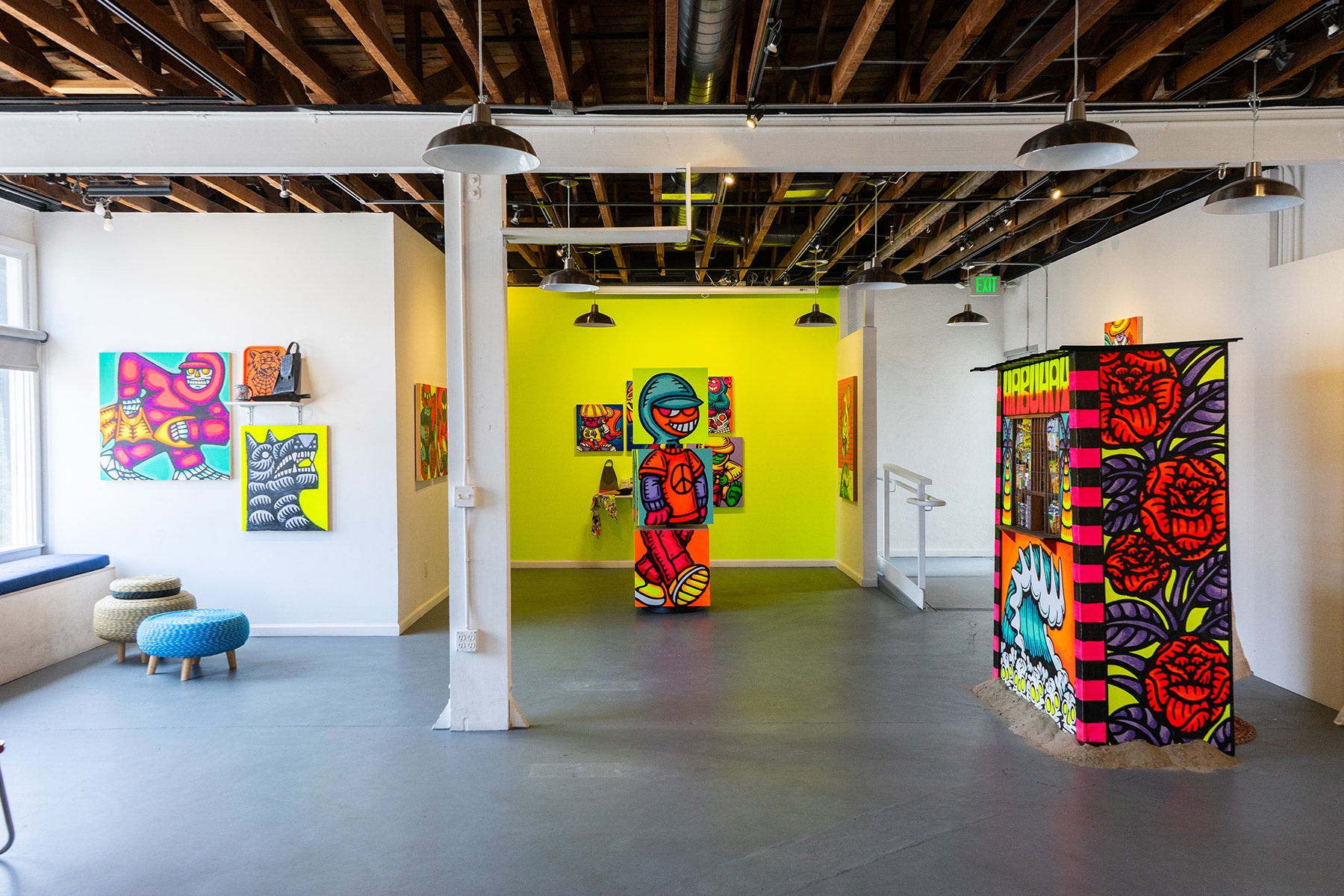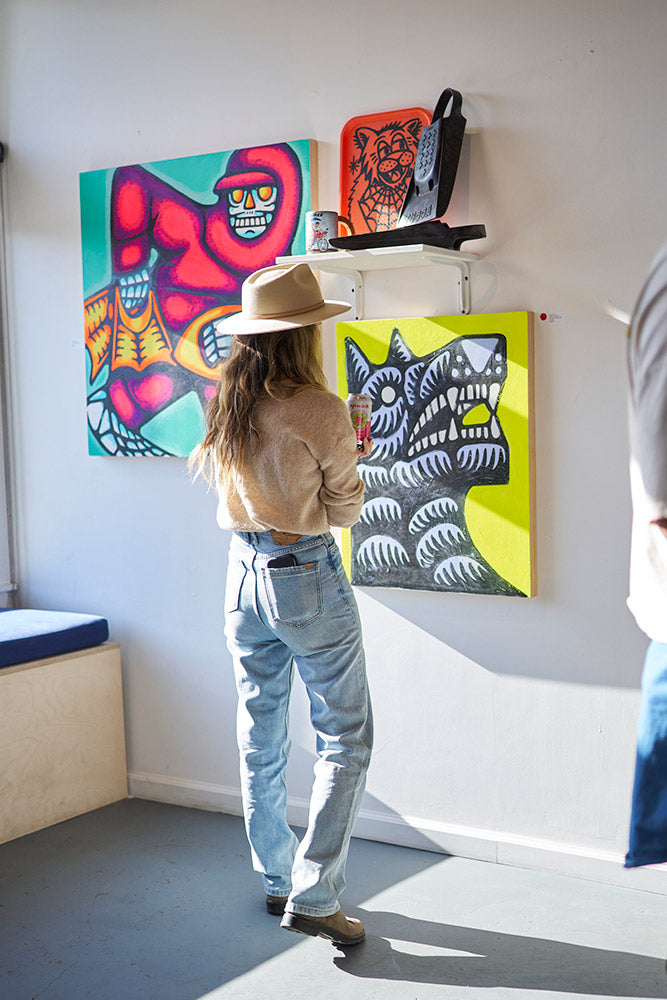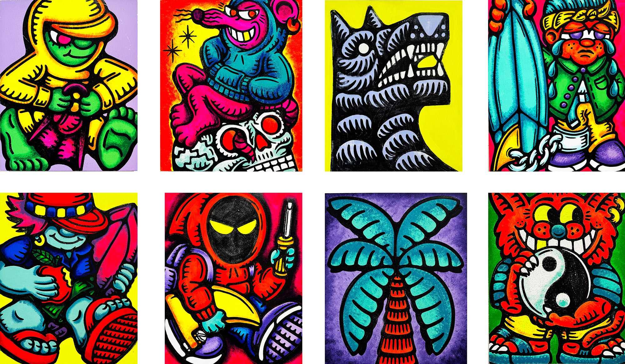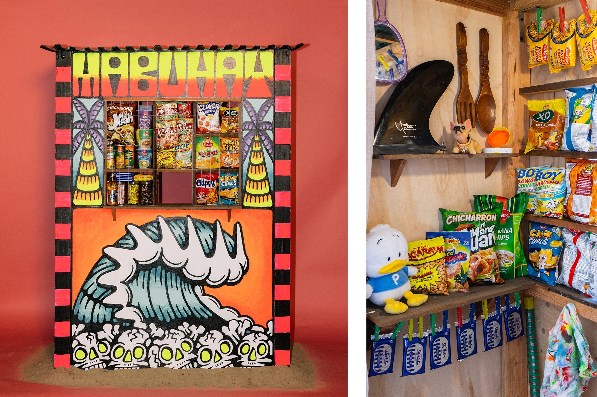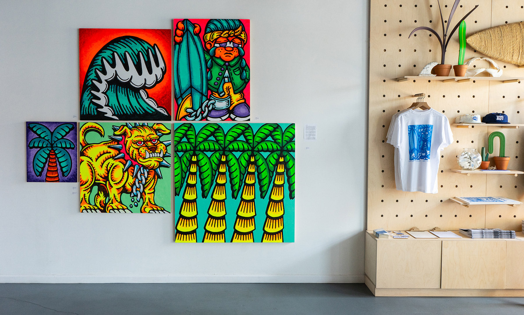 “Sari Sari” is a solo exhibit featuring the vibrant and culturally layered art of Santa Barbara artist, DJ Javier. The works in Sari Sari feature bold coastal motifs, objects, and cartoonish figures depicted in bright, fluorescent hues. Whether it’s a surf gangster, wave, palm tree, a guard dog, or scene from Filipino lore, DJ employs his own unique style, playful humor, and life experience to bring these colorful characters to life. All works are painted on wood panel. This exhibit will be on view at Indoek gallery in Ventura, California from May 25th through July 14th, 2024.