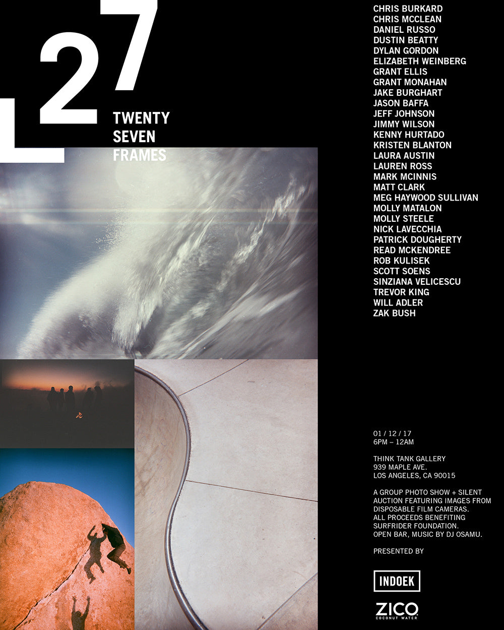 We sent 27 single use (disposable) cameras out to some of our favorite photographers, they shot stuff with it, then mailed it back to us. We developed the film and shared the results on the blog. The project then culminated with a group show in downtown LA featuring a curated collection of framed prints from the series with all sales donated to the Surfrider Foundation.